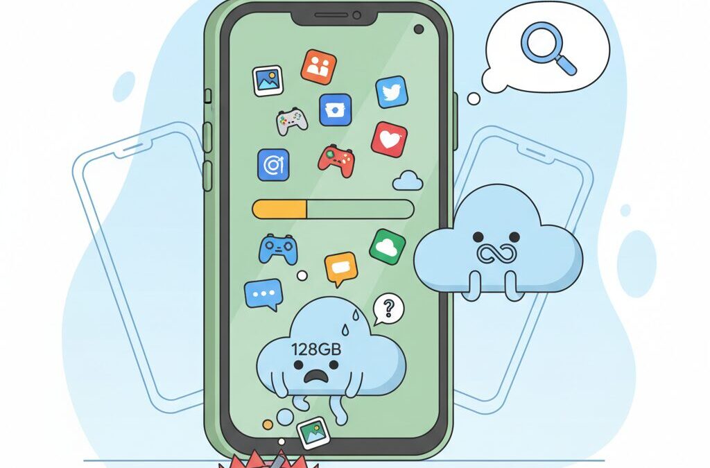 スマホを買ったときに表示される「128GB」という数字。実はこれ、最初から全部を自由に使えるわけではありません。**使っていくうちに、体感的には数字以上のスピードで容量が減っていく**のが、今のスマホのリアルです。